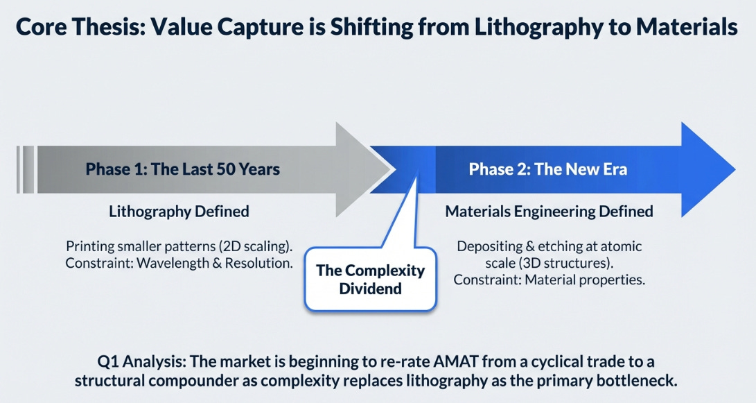 Semiconductor value is shifting from lithography to materials engineering, and AMAT may be the primary beneficiary.