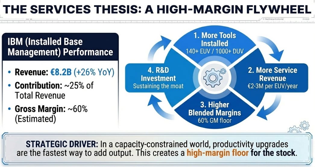 In October, I argued that ASML’s Installed Base Management (IBM) business was the “hidden story”, a high-margin services annuity that the market systematically undervalued. Q4 confirms the thesis is playing out faster than I expected.
