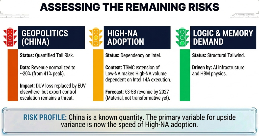 The risk has shifted from “will demand materialize?” to “can ASML execute?” That’s a better problem to have.