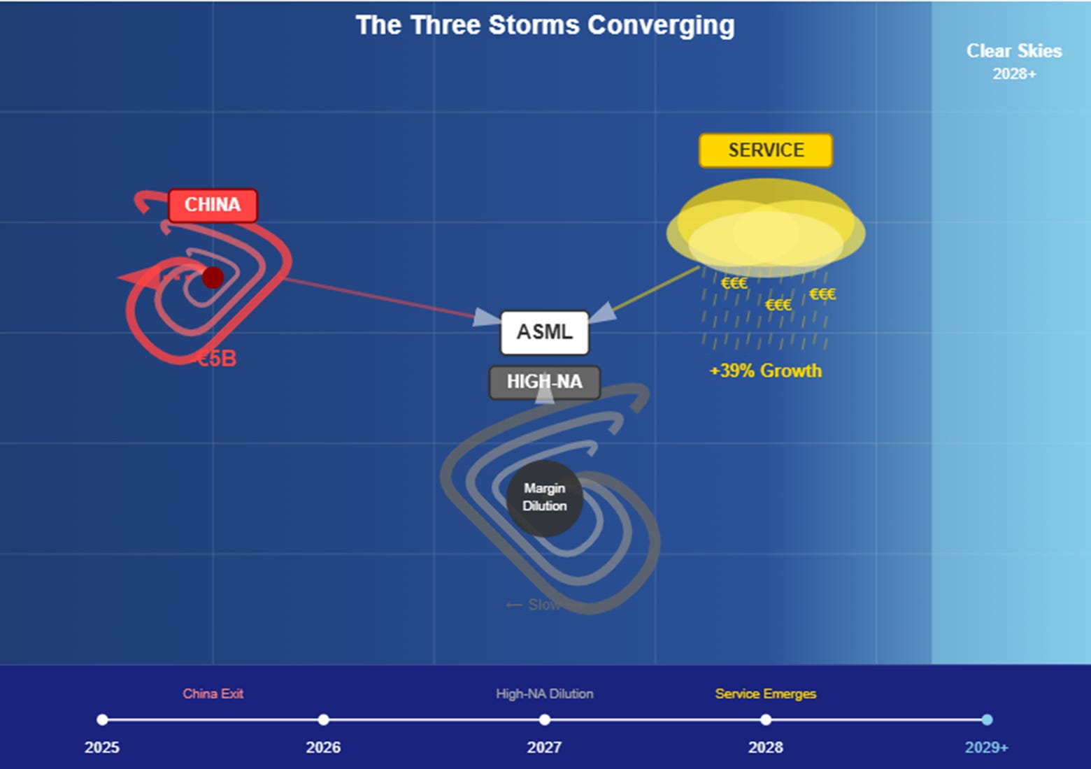 First, the China unwind. Second, the High-NA transition. Third, the service transformation itself. Any one of these would create quarterly noise. All three together? That’s a recipe for multiple years where the numbers look messy even as the business quality improves.