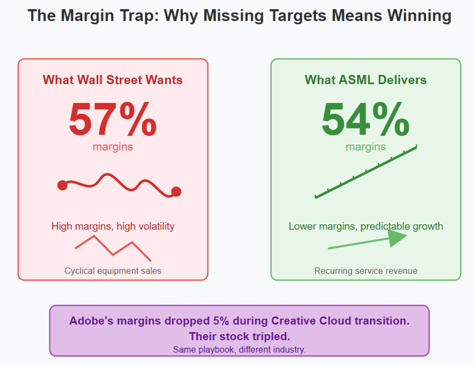 Short-term noise, long-term rerate: ASML is transitioning to a recurring revenue model, but the shift brings near-term turbulence that’s clouding the structural upside.