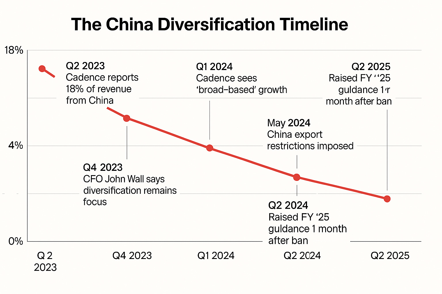 Accidental Proof of Platform Dependency: Despite a one-month export restriction to China (9% of revenue), Cadence raised full-year guidance—revealing that global customers treated access to its tools as non-negotiable infrastructure, not discretionary software.