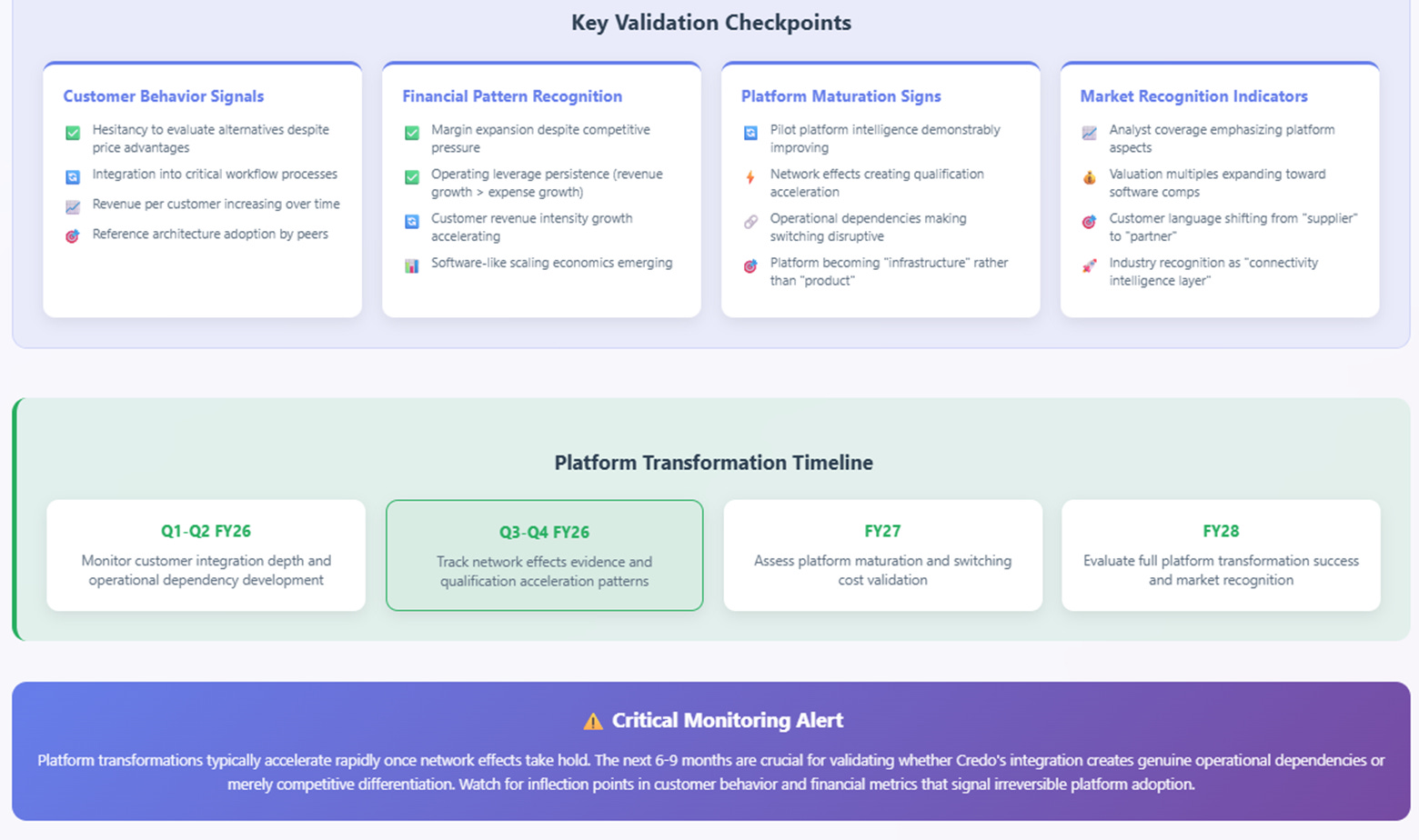 The challenge facing investors isn't predicting Credo's future but interpreting what's already happening. The same evidence that suggests platform transformation to some appears as excellent hardware execution to others. The difference lies in how one reads the signals and what patterns they suggest.