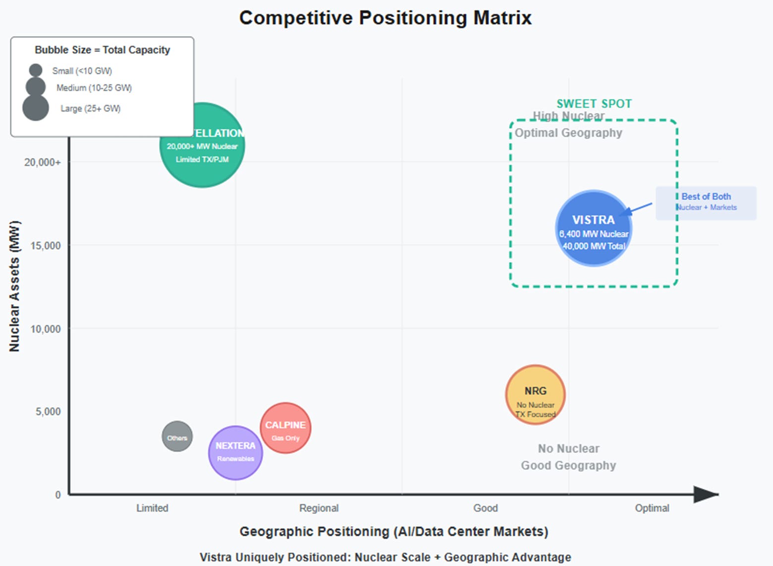 This structure fundamentally changes the investment proposition. Traditional merchant power companies offer high returns with high volatility. Vistra now offers utility-like cash flow predictability with meaningful upside optionality—a combination rarely seen in the power sector.