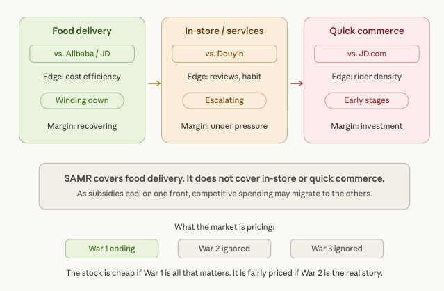 The market’s debate about Meituan is still framed as “when does the subsidy war end?” I think that is the wrong question. The market is waiting for the war to end. It should be asking what the peace treaty looks like.