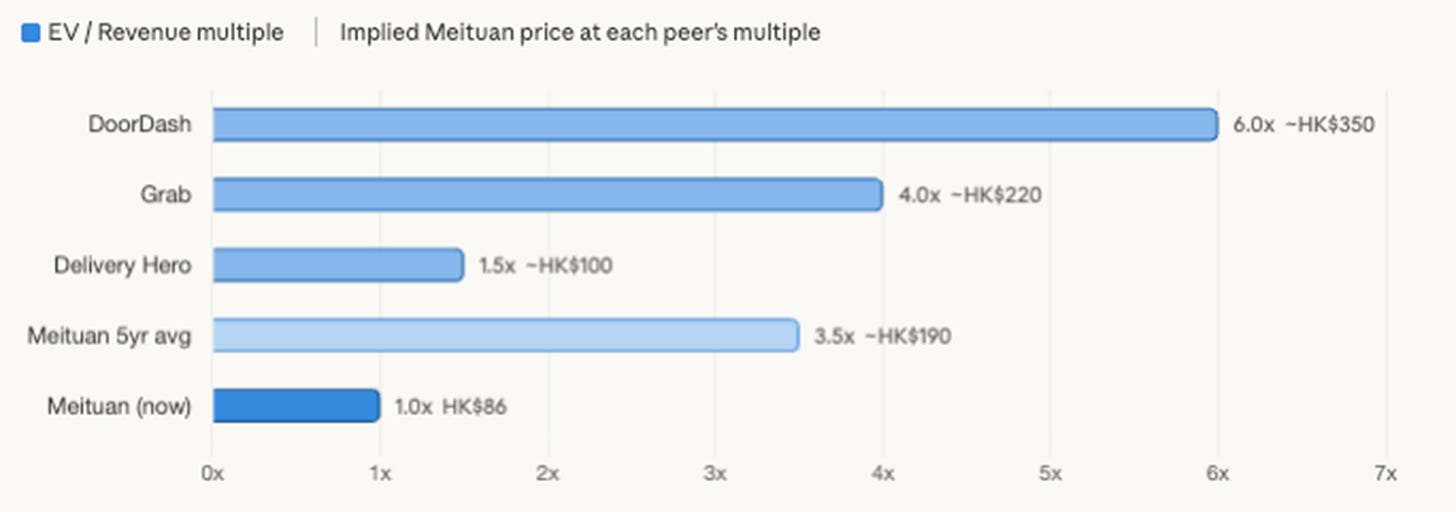 I see a reclassification story. The market values Meituan at roughly 1x EV/Revenue, versus DoorDash at 6x, Grab at 4x. Part of that gap is the China discount. But part is a classification error. If Meituan is “just” food delivery, the discount is deserved. If Meituan is the default operating system for local demand in China, with delivery as backbone, membership as retention engine, advertising as monetization layer, AI as interface, and fulfillment as infrastructure, then the stock is materially undervalued even after the margin reset.