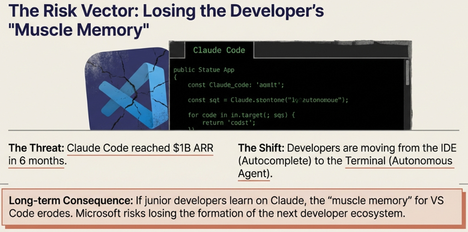 Over 5-7 years, this could hollow out Microsoft’s developer ecosystem advantage.