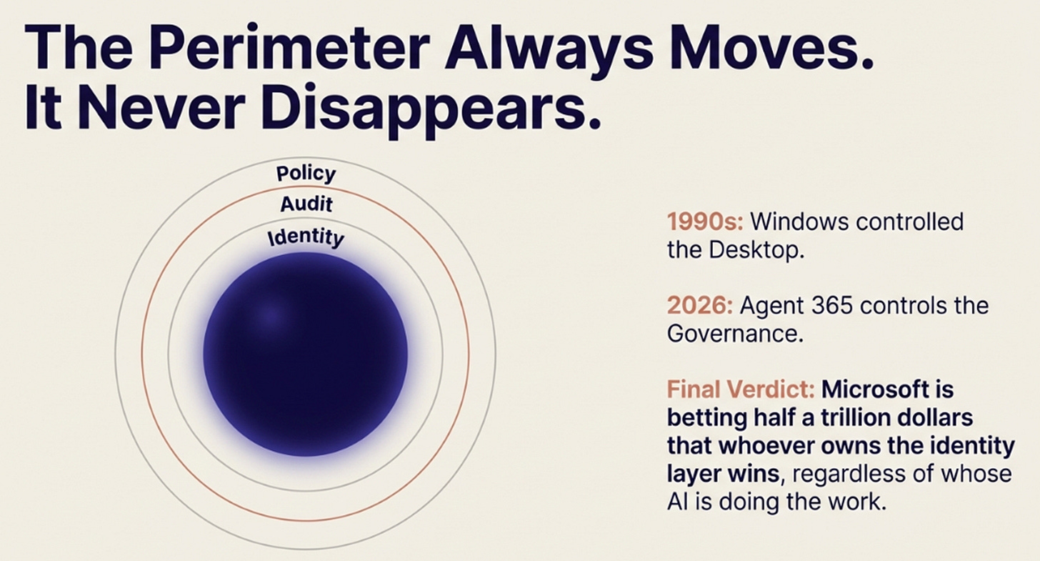 Agent 365 is betting that this context layer, combined with identity, permissions, and audit, becomes the unavoidable control point. Models commoditize, infrastructure becomes utility pricing, but enterprise governance centralizes because the risk surface is too large to fragment.