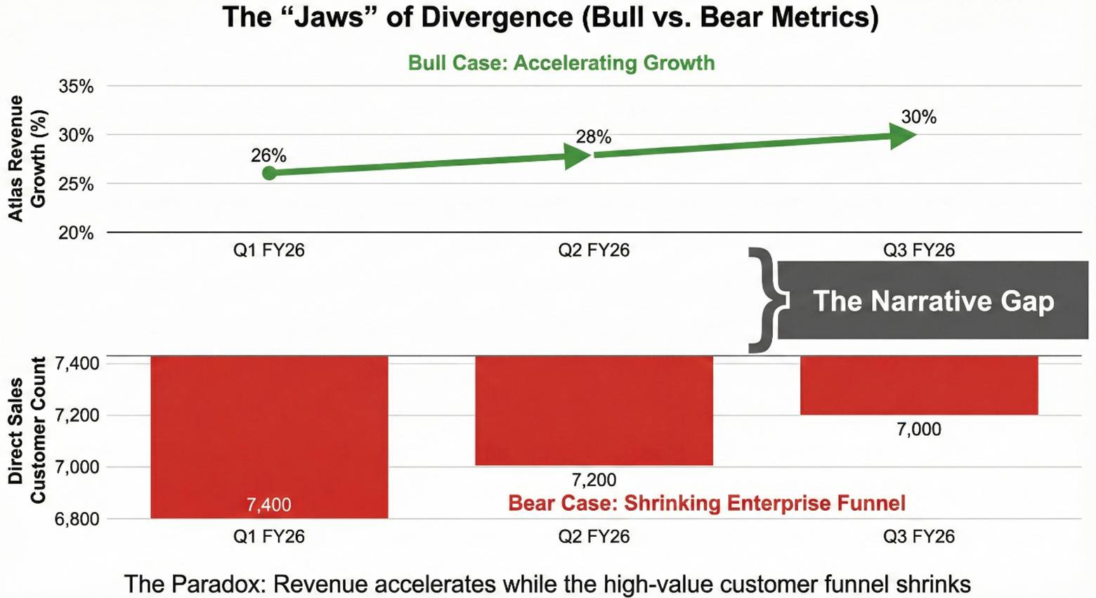 The honest answer is that Q3 didn’t resolve the debate between these scenarios. It provided evidence for both. The Atlas reacceleration supports the bull case. The direct sales decline supports the bear case. Both are real.