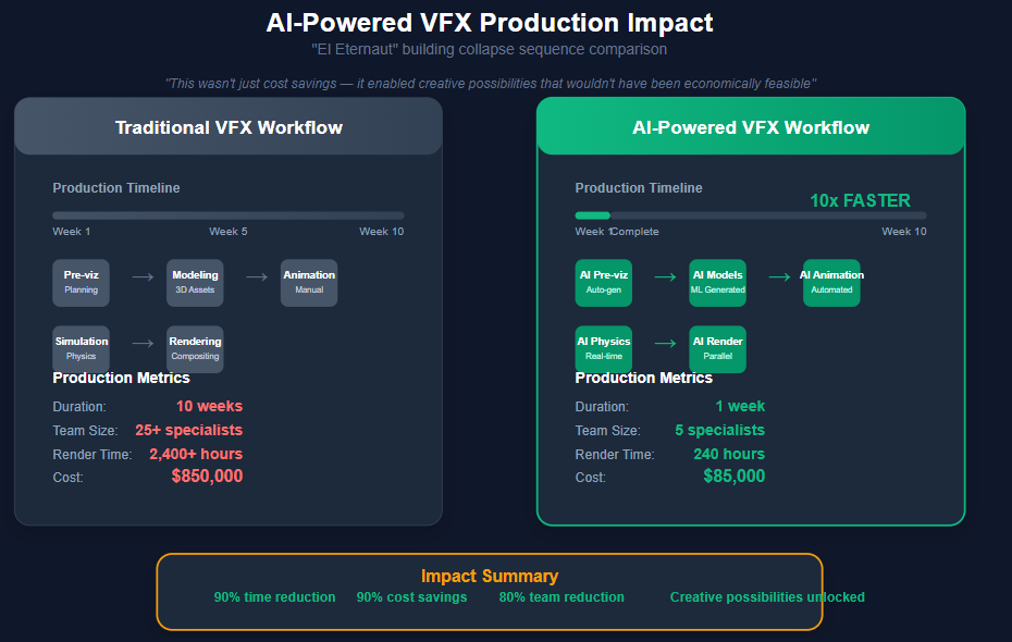 Netflix is also leveraging AI to improve both content production and user experience. They highlighted using AI-powered VFX tools for "El Eternaut," where a building collapse sequence in Buenos Aires was completed 10 times faster than traditional VFX workflows would allow. This wasn't just cost savings — it enabled creative possibilities that wouldn't have been economically feasible at that show's budget level.