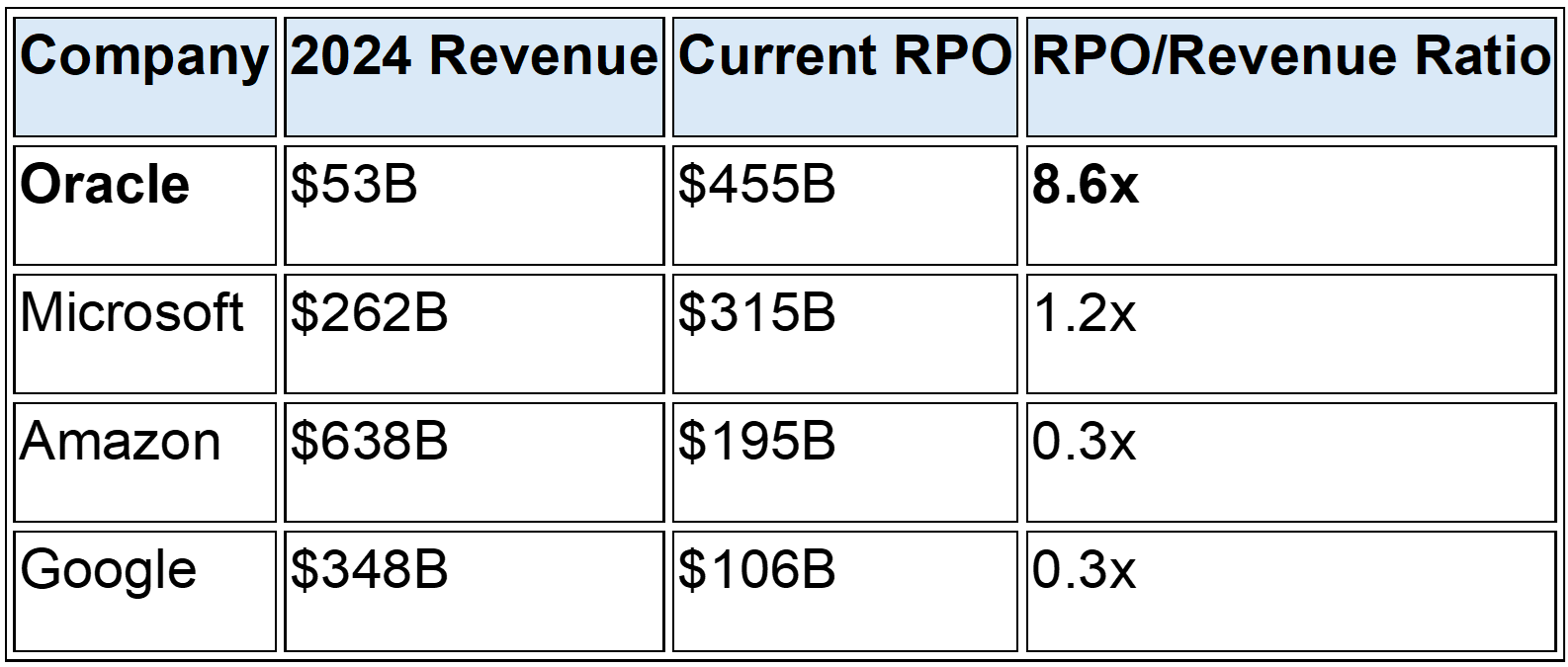 To understand the magnitude, consider Oracle's RPO relative to other technology giants: