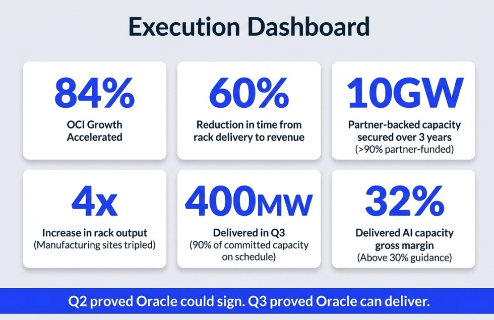 Q2 proved Oracle could sign. Q3 is the first quarter that suggests Oracle can deliver. The stock no longer needs promotion. It needs sequencing. Oracle finally provided it.