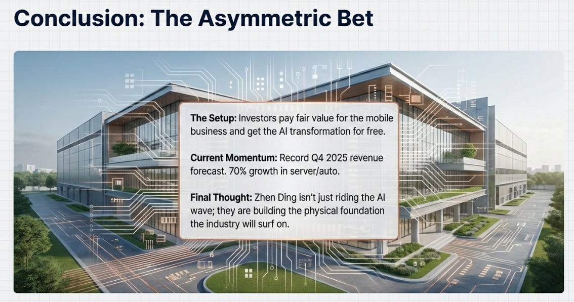 For those willing to look past near-term margin friction, Zhen Ding offers something rare: a proven execution machine captureing a structural tailwind that its own scale makes possible. The company isn’t just riding the AI wave. It’s building the physical foundation upon which the entire industry will surf.