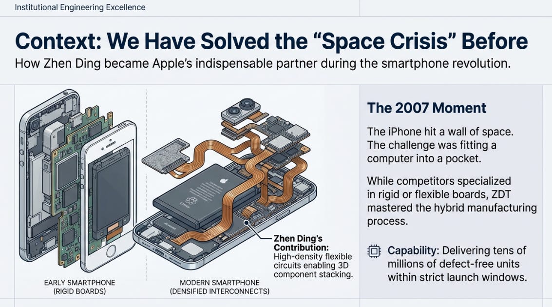 Today, the industry faces a different kind of space crisis. The challenge isn't fitting a computer into your pocket; it's moving unfathomable amounts of data through an AI cluster at 224 Gbps. The interconnects linking NVIDIA's Blackwell GPUs aren't just passive highways, they're active participants in computation, their material properties determining whether signals arrive intact or dissolve into heat. Once again, the physical foundation of computing is being rewritten. And once again, Zhen Ding is positioning itself as the architect.