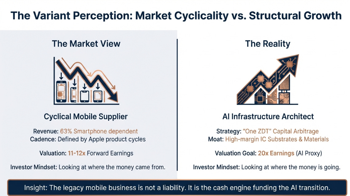 The variant perception is this: Zhen Ding isn’t pivoting away from mobile; it’s leveraging mobile’s massive cash flows to build a moat in AI infrastructure that pure-play competitors cannot match. The “One ZDT” strategy, offering every interconnect solution from flex circuits to advanced IC substrates, isn’t just a bundling tactic; it’s a capital arbitrage play. The company uses its high-volume, lower-margin FPC business to subsidize entry into capital-intensive, high-margin markets where Japanese incumbents have historically dominated.