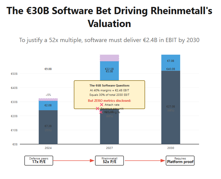 Papperger acknowledged that “on the digitization side, we have to grow... this will be on the same level or higher than air defence” but provided no specifics on monetization mechanics or attach rates. This opacity around the very metrics that justify the valuation premium should concern investors.