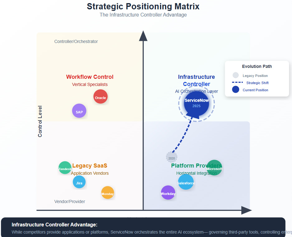 The immediate implication is that ServiceNow is no longer competing for market share. They're defining what the market becomes. Every workflow they absorb, every AI agent they govern, every integration they enable creates additional switching costs while expanding their platform's value.