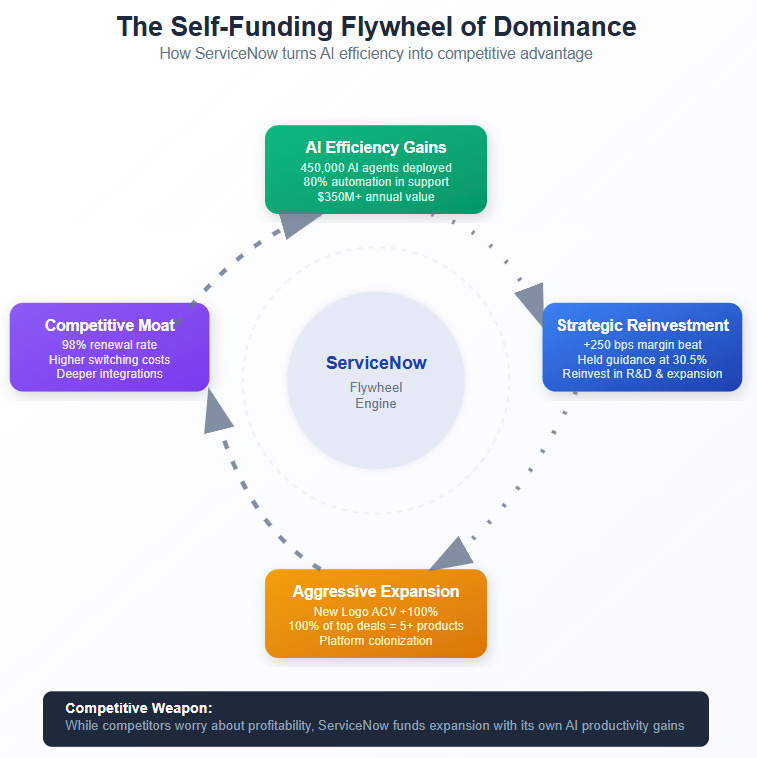 Most SaaS companies would take the margin expansion and call it a day. ServiceNow is using it as ammunition to accelerate market capture while competitors worry about profitability.