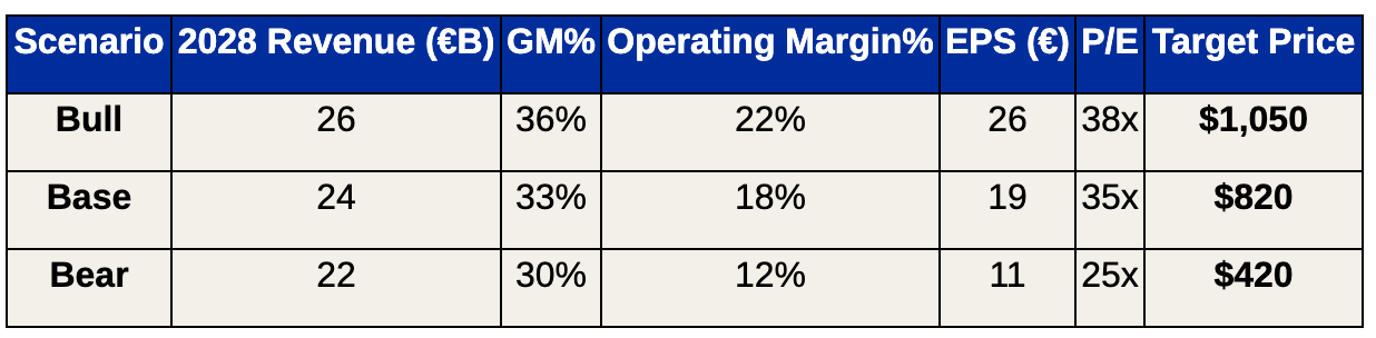 At current prices around $600, these scenarios suggest asymmetric risk-reward characteristics that favor patient investors. The base case alone provides 33% upside, while the bull case offers 75% potential returns.
