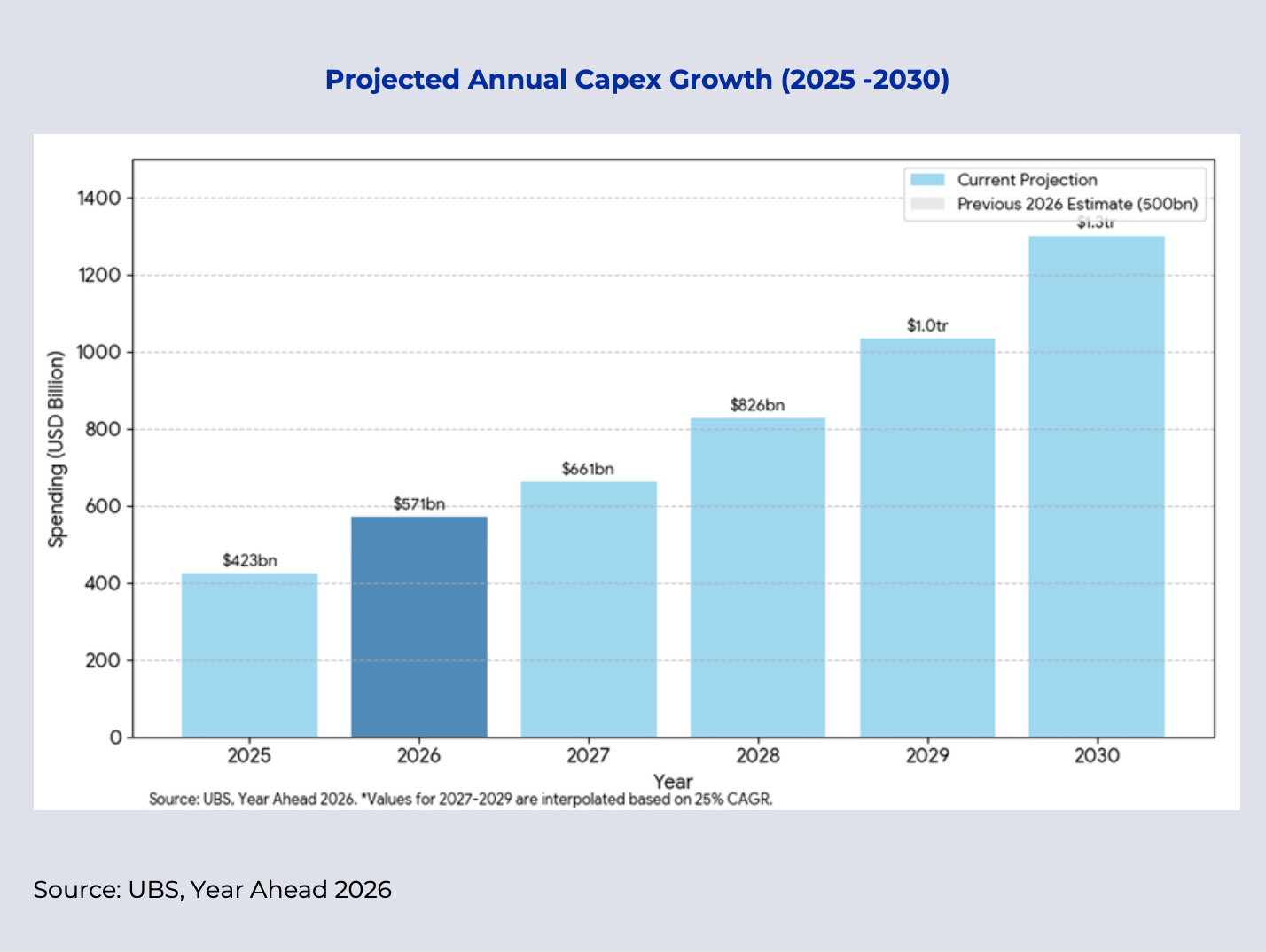 Chart: AI capital expenditure continues to rise sharply into 2026