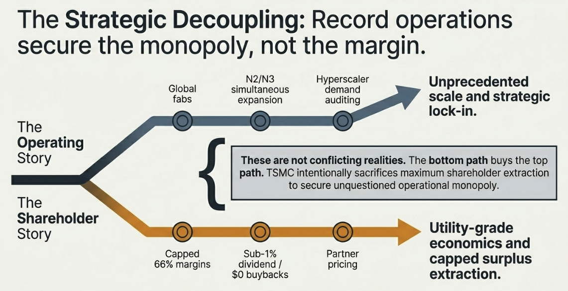 This is not a bullish or bearish observation. It is a strategic observation about what kind of company TSMC is choosing to become, and that choice is the through-line to everything that follows.