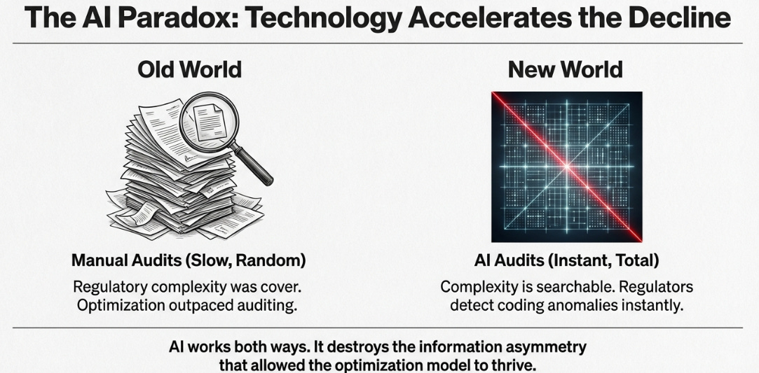 In the old world, regulatory complexity was cover. Audits were manual, slow, and sampled tiny fractions of claims. Optimization strategies could operate in the gaps between enforcement actions.