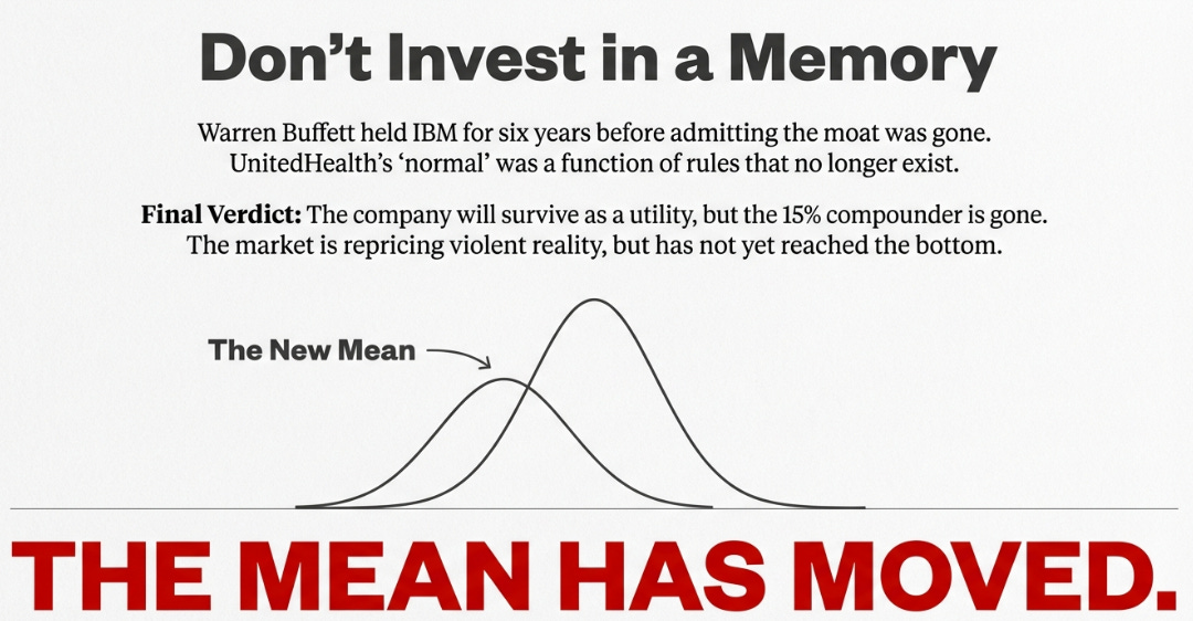 This isn’t a rebound setup: UnitedHealth looks less like Apple 2016 and more like IBM 2011, a transition from compounder to utility.