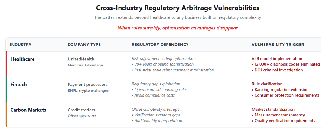 UnitedHealth's experience suggests several diagnostic questions for evaluating regulatory arbitrage risk: