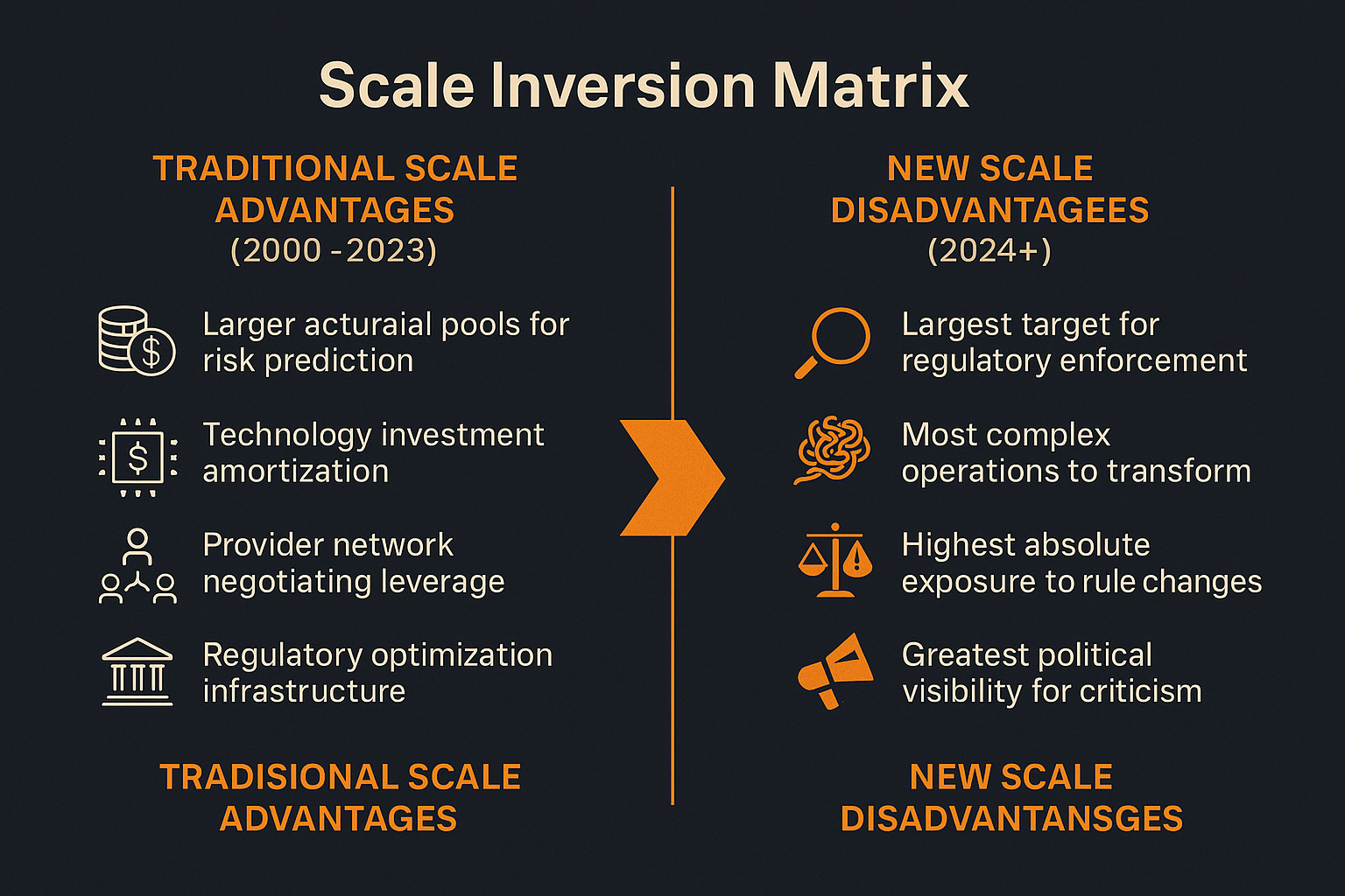 UnitedHealth's crisis illuminates a broader industry transformation where traditional competitive advantages are becoming strategic vulnerabilities: