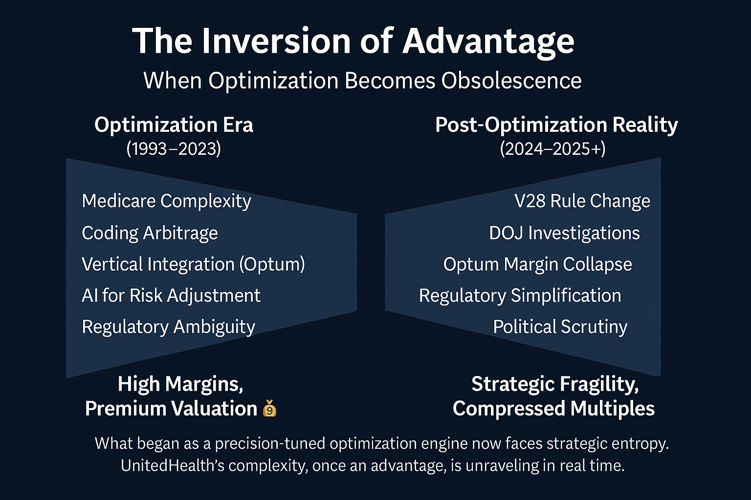 Optimization Engine Broke: UnitedHealth’s profit model—built on gaming Medicare complexity—collapsed under new rules, audits, and DOJ scrutiny.