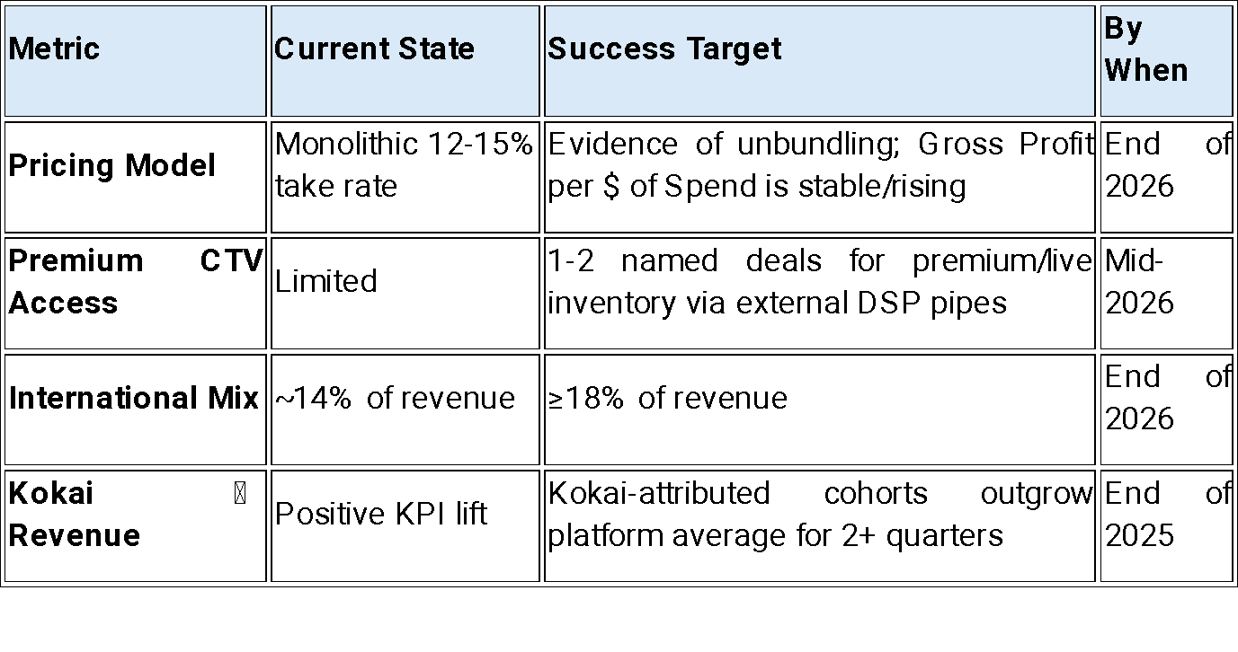 Premium Access Breakthroughs: Pragmatism must win over purity. The Trade Desk needs to secure meaningful, programmatic access to premium walled-garden inventory. A landmark deal with a Prime Video, a Disney+, or a Netflix—even with uncomfortable terms—would be a game-changer, proving they can get clients access to the supply they covet most.