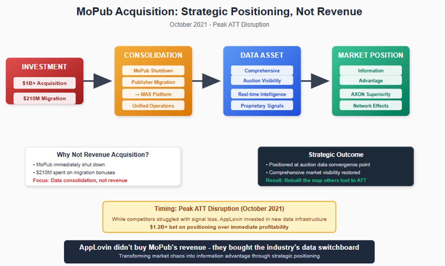 In October 2021, as the mobile advertising industry struggled with ATT's aftermath, AppLovin acquired MoPub from Twitter for over $1 billion. The timing appeared coincidental—routine consolidation in a distressed market. The execution revealed different strategic intentions entirely.