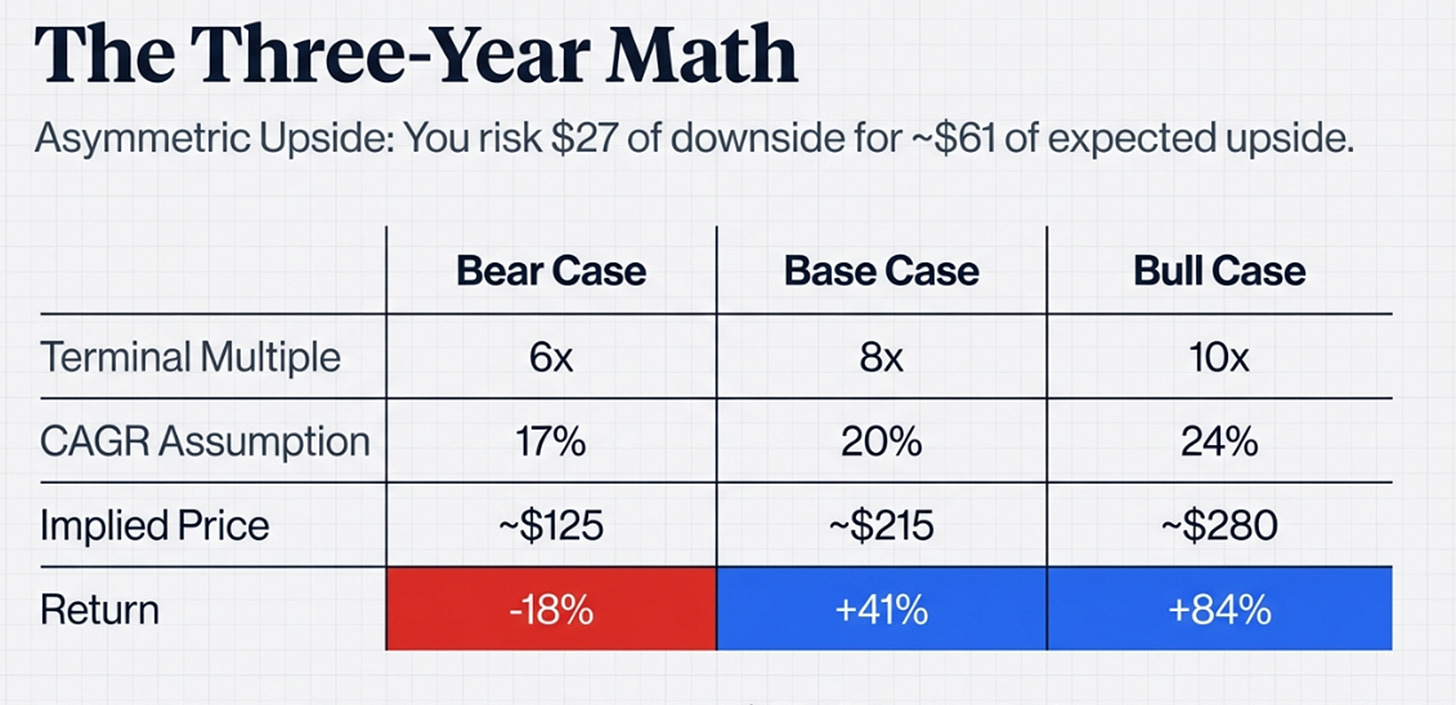 I want to be precise about this: if three or more of those invalidation signals trigger simultaneously, the 2016 analogy breaks. That would mean the penalty box isn’t temporary multiple compression, it’s the market correctly pricing a business losing its architectural moat. At that point, 6.4x isn’t cheap. It’s fair.